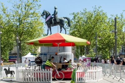 « Nous voulions faire un lien avec le Tour de France autour d’animations ludiques. Nous espérons ainsi créer une effervescence dans les commerces et dans les bars », souligne Laurent Naud, city manager. Yoyo le clown, avec ses 30 vélos ludiques, baptême en pousse-pousse, rosalie bardée d’instruments de musique ou même danse brésilienne de samba, le Tour prend déjà des allures de petite reine.